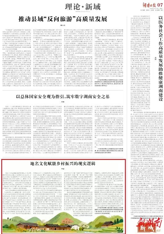 近日,我院马克思主义学院李红博士在《湖南日报》理论版发表《地名文化赋能乡村振兴的理论逻辑与实践路径》一文。该文系其主持的湖南省教育厅科学研究重点项目“晚清湘东乡村治理与社会变迁研究”(22A0514)阶段性成果。